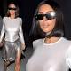 Kim Kardashian flaunts newly gym-honed figure as she goes braless in a skintight bodysuit for date with Kanye - Daily Mail